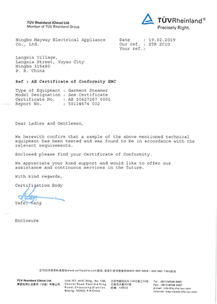 我們是一家專業(yè)的制造商和出口商,提供設計、開發(fā)、生產(chǎn)、銷售和相關(guān)服務,產(chǎn)品包括電熨斗、手持式蒸汽掛燙機、蒸汽刷等。 美威工廠占地4000平方米,擁有雄厚的技術(shù)力量和先進的設備,可以滿足您對生產(chǎn)能力和質(zhì)量的各個方面的要求,目前已通過國際 ISO 9001 質(zhì)量保證標準和 BSCI 認證。此外,產(chǎn)品獲得 CE/GS/CB/ROHS/ERP/PAHs 批準,并遠銷歐洲、中東、俄羅斯、亞洲和南美等。